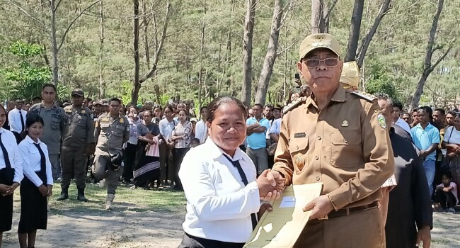 Penyerahan SK dilakukan langsung oleh Bupati Malaka dr. Stefanus Bria Seran, MPH (SBS) di Pantai Cemara Abudenok, Desa Umatoos, Kecamatan Malaka Barat, Malaka, NTT, pada Kamis (23/10/2025).