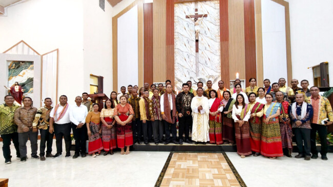 BIDIKNUSATENGGARA.id | Bupati Malaka, dr. Stefanus Bria Seran (SBS), bersama keluarga menghadiri perayaan Misa Sabtu Haleluya di Paroki Kaputu, Kecamatan Sasitamean, yang berlangsung khidmat dan penuh sukacita. Di acara persembahan tersebut, Pastor Paroki, Romo Erwin Yohanes Asa, Pr, memimpin misa yang dihadiri ribuan umat, pejabat, dan tim pendamping pembangunan Kabupaten Malaka. Sabtu, (4/4/26).