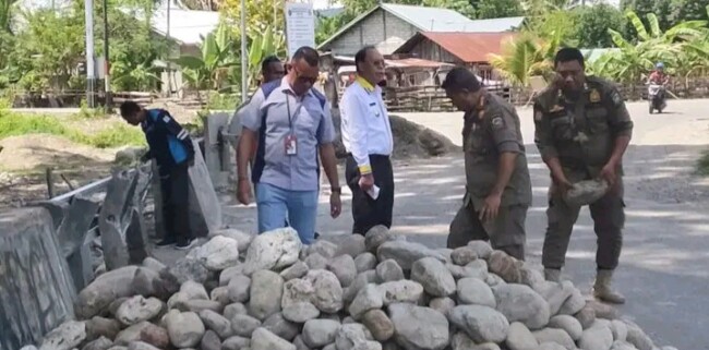 Mulai 1 Januari 2026, masyarakat dilarang keras menumpuk atau menyimpan material bangunan seperti batu, pasir, sertu, dan material lainnya di bahu maupun badan jalan.