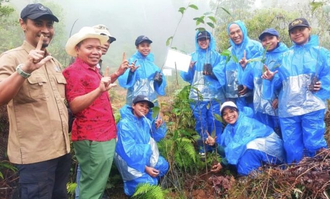 BIDIKNUSATENGGARA.COM | Di tengah guyuran hujan deras dan di selimuti kabut tebal di kawasan hutan Danau Ranapoja, Desa Rendenao, Kecamatan Lambaleda Timur, Kabupaten Manggarai Timur, Provinsi Nusa Tenggara Timur, Selasa, (10/12/2024) tidak menyulutkan semangat dari 200 masyarakat petani, siswa siswi SMKN 1 Pocoranaka dari jurusan kehutanan dengan mengenakan jas hujan plastik menanam 2000 pohon lokal dan endemik yang cocok di kawasan hutan Danau Ranapoja dan dua danau lainnya, yakni danau Kenti dan Rawuk.