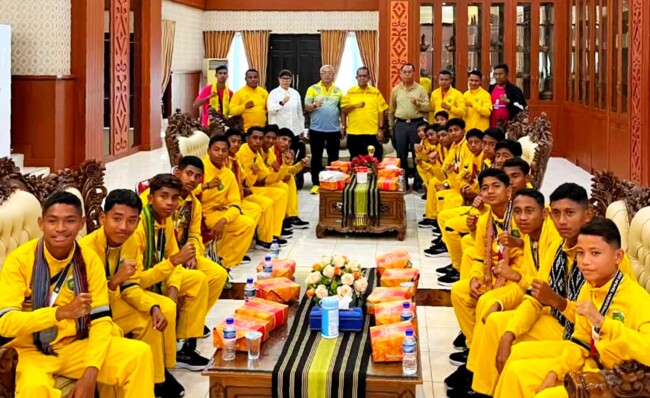 BIDIKNUSATENGGARA.id | Rumah Jabatan Gubernur Nusa Tenggara Timur (NTT) dipenuhi suasana bangga ketika Gubernur Melki Laka Lena menyambut kontingen PS Malaka U-15 dengan hangat pada Sabtu, (4/10/25).