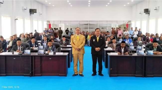 BIDIKNUSATENGGARA.COM | Bupati Stefanus Bria Seran, bersama dengan Wakil Bupati Henri Melki Simu, menyampaikan pidato perdana di sidang paripurna yang dipimpin oleh Ketua DPRD Malaka, Adrianus Bria Seran. Sidang ini dihadiri oleh Wakil Ketua 1, Wakil Ketua 2, Forkopimda, anggota DPRD, serta OPD, dan berlangsung di ruang sidang gedung DPRD Kabupaten Malaka pada Jumat, 7 Maret 2025.